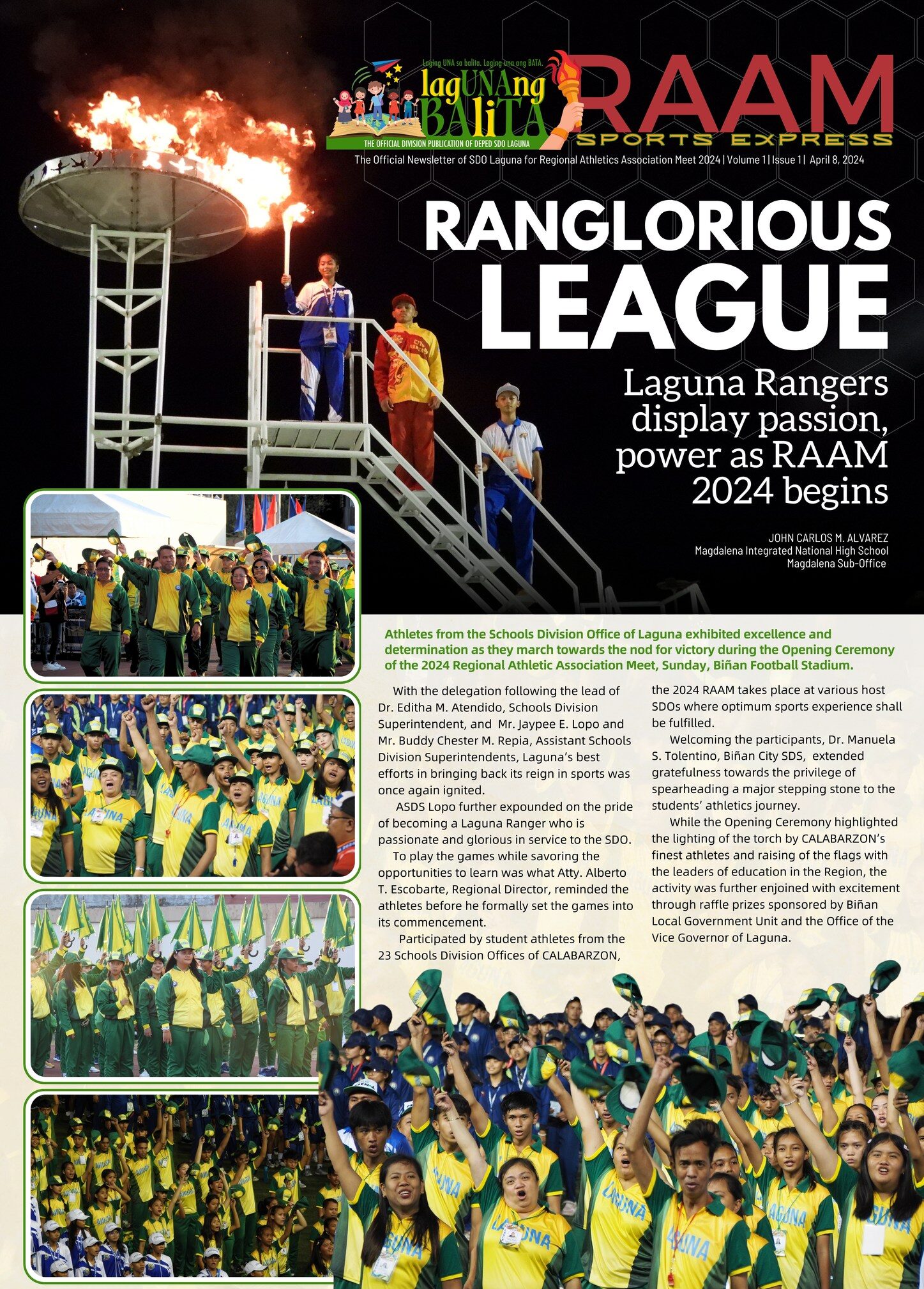 Lagunang Balita RAAM Sports Express The Official Newsletter of SDO Laguna for Regional Athletics Association Meet 2024, April 8 issue.