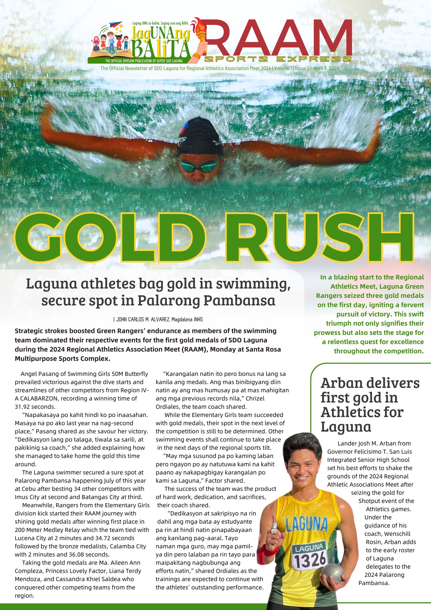 Lagunang Balita RAAM Sports Express The Official Newsletter of SDO Laguna for Regional Athletics Association Meet 2024 April 9 | 2nd Issue