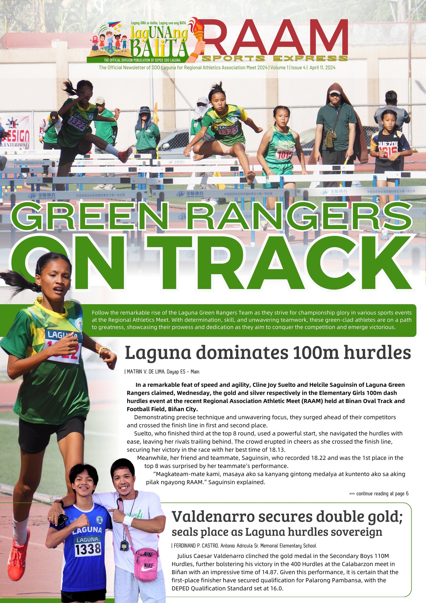 Lagunang Balita RAAM Sports Express The Official Newsletter of SDO Laguna for Regional Athletics Association Meet 2024 April 11 | 4th Issue